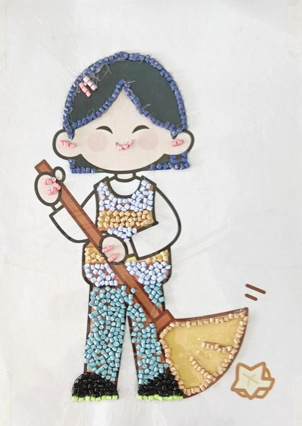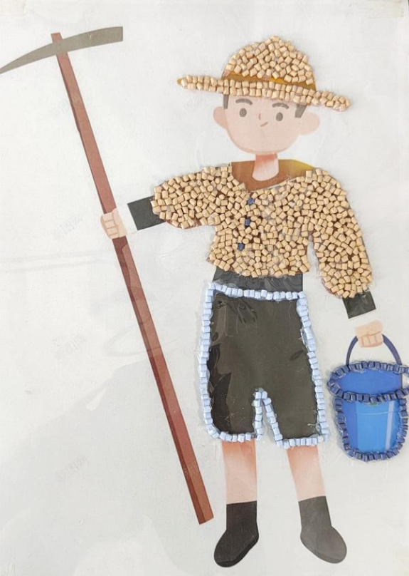 手脑并用,知行合一。学生亲身劳动,从劳动经验中去理解认识事物、 发展思维,在做中学、做中思、做中知、做中获。同学们两人一组合作进行,经过几个小时的辛苦劳动将平淡无奇的色母粒、热熔胶、聚酯膜等高分子材料与创新思维有机结合,绘出美丽画卷,体验高分子材料的奇妙功能。表达了对不畏骄阳的建筑工人、辛勤耕耘的农民、传道受业解惑老师无比崇敬之情。采用“寓教于乐”的教育理念,将劳动教育与本专业理论知识融合,将勤劳的美德与创新的智慧融为一体,在劳动中理解专业知识 ,培养出高分子材料与工程领域德、智、体、美、劳全面发展的社会主义事业合格建设者和可靠接班人。