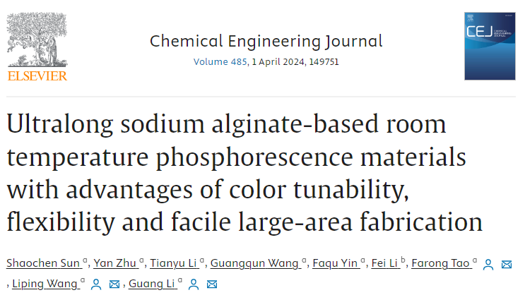 Chemical Engineering Journal | 我院李光课题组在发光颜色可调柔性室温磷光材料研究方面取得进展