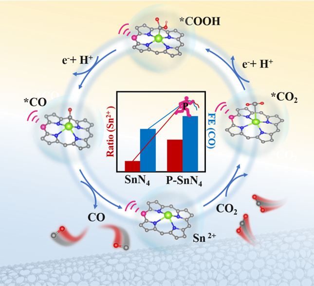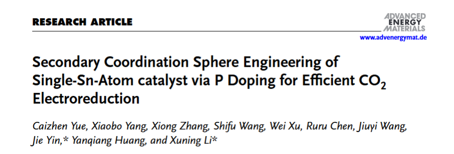 近日,我院新能源材料与器件团队在Advanced Energy Materials(一区TOP期刊,影响因子:27.8)发表了题为 Secondary Coordination Sphere Engineering of Single-Sn-Atom catalyst via P Doping for Efficient CO 2 Electroreduction 的学术研究论文。通过合理设计探索出P掺杂在第二配位壳层的Sn单原子催化剂(P-SnN4-CNT),结合原位表征技术和DFT计算揭示了P在反应过程中的重要作用以及Sn单原子电催化二氧化碳还原到CO的真实活性位点。