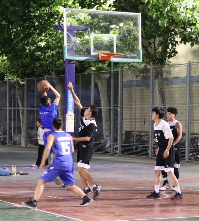 随着一声哨响,比赛正式开始,师生双方迅速进入状态,抢球、传球、投篮,队友间紧密配合,记分板上的数字不断变化,双方球员们愈战愈勇。投球时动作潇洒,拦球时针锋相对,激烈的竞赛对抗配合着双方球员精彩的抢断、帅气精准的投篮,引球员和观众发出声声喝彩。中场休息时,双方球员紧张地讨论着分工配合。球赛仍在进行,球员们精力充盈,跳跃、拦球,每一次进球、每一声呐喊,都是对篮球的热爱、对比赛的投入。最终,毕业生们在ok138cn太阳集团的最后一场篮球比赛中成功战胜了老师,以青春的炽热为自己的大学生涯画上了圆满的句号。