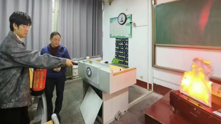 活动最后,马老师现场展示了灭火器的正确操作方法,指出灭火器的使用要按照“提、拔、握、压”四步进行,并通过设备模拟起火现场,让每位同学亲自动手操作,直观感受消防器材的使用,以理论和实践相结合的方式,进一步提高学生的应急处突能力。