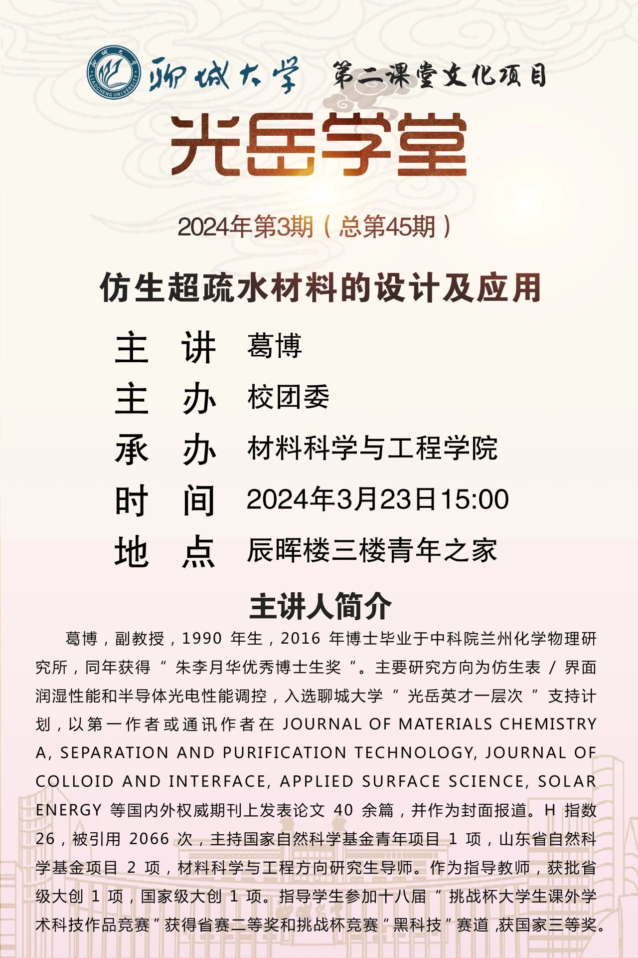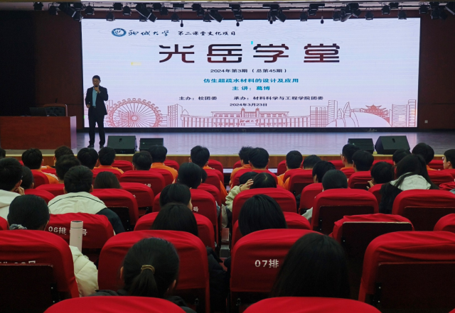 为使学生深入了解材料专业,增强专业认同感,拓宽学术视野,2024年3月23日,由校团委主办、ok138cn太阳集团529承办的“光岳讲堂”活动在ok138cn太阳集团东校区辰晖楼三楼青年之家举行,本次活动特邀葛博副教授担任主讲。