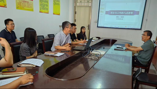 倪俊杰老师作为一名担任过18年班主任的老师,给大家分享了《班主任工作的几点思考》,他指出班主任老师是一名思考者、管理者和服务者,强调了班主任对学生做思想工作的重要性。接着倪老师分享了做班主任以来总结的6条工作技巧与策略,同时向2024级新生班主任们送上了诚挚的祝愿,希望他们能在班主任工作中有所收获,不断成长和进步。