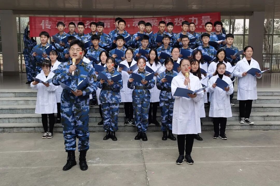 在主持人的宣布下,朗诵比赛正式开始。轻盈优美的开场舞吸引了大家的目光,打破睡意惺忪的下午,点燃大家的激情。比赛开始,各班级统一着装,在遵守规则的情况下勇于创新,歌曲、书法、乐器、舞蹈等尽显风采,得到了评委的好评。各班拿出自己最好的精神面貌,一个个眼神透露着对英雄先烈和抗疫战士的敬意,一声声呐喊诉说着大家坚定的意志,一个个敬礼表达着当代青年学生的爱国情怀,每一场朗诵都振奋人心,赢得了一片片激烈的掌声。经过激烈的角逐,现场评委进行打分,并在在各年级选 出一、二、三等奖。比赛结束后,工作人员合影留念。