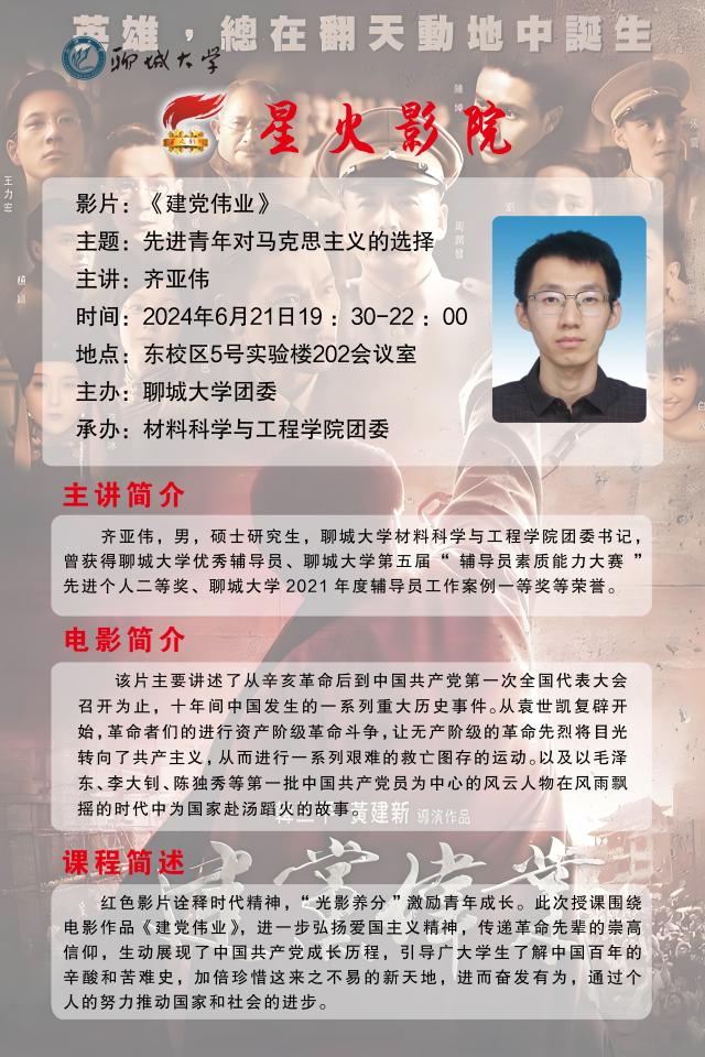 为了引导同学们进一步体悟革命精神和爱国情怀,增强国家认同感和民族自豪感。6月21日,ok138cn太阳集团529于东校区5号实验楼202会议室开展星火影院观影活动。本次活动由学院团委书记齐亚伟担任主讲人。