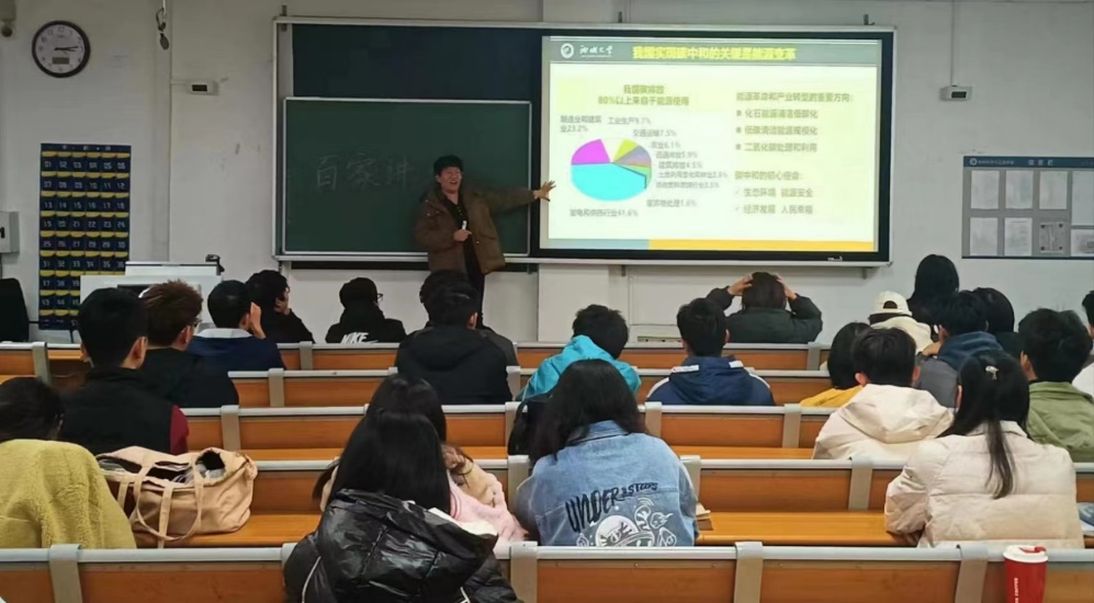 尹杰老师从碳达峰、碳中和开始谈起,依次为同学们讲解了我国实现碳达峰、碳中和的目的及现存问题,并引出了电解水制氢的研究方向。此外,尹杰老师以电解水反应机理为过渡,向同学们展示了工业上氢能经济的完整产业链,进一步拓宽了同学们的视野。同学们纷纷表示,尹杰老师的讲解生动形象,能够让同学们直观认识环保高效电解水的工业化流程,使得大家收获颇丰。