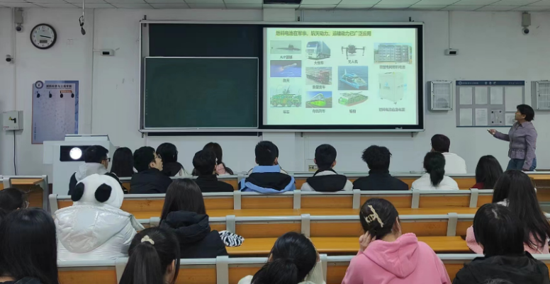 张老师从电池对科技发展的重要性开始谈起,向同学们科普了电池技术的发展历史,以此引出中国锂电池产业研究现状。随后,张老师向同学们讲解电池的结构与发电效率和储存电量的大小的关系,加深了同学们对锂电池相关技术了解。同时以我国主要的锂电池企业相关领域取得的成就为例,帮助同学们了解我国锂电池发展趋势,鼓励同学们要关注科技发展,积极学习和掌握新技能。最后,张老师通过讲述电池对生产生活的影响,明确储能科技发展对国家经济发展的重要性,扩展了同学们的视野。