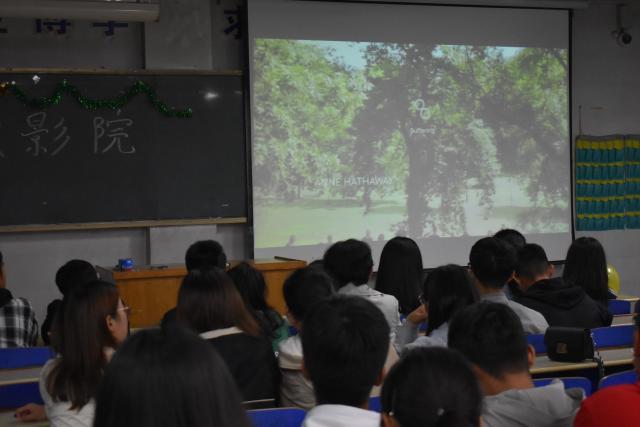 活动开始前,我们积极的布置教室,调试设备。距离电影开始半小时,同学们就已经陆续地入座,脸上洋溢着期待又灿烂的笑容。部长给大家介绍了活动的要求和电影的大致主题,随后,电影就在同学们的期待声中准时放映了。影片一开始,有着浓厚的美国文化气息的色调与构图就使同学们投入其中。电影中有使同学们开怀大笑的片段,也有使同学们感动不已的情节……时间过得很快,影片迎来了结局,尽管意犹未尽,但主人公——70岁的实习生本谦卑、睿智、低调的性格与不断适应社会发展的品质深深地留在了同学们的脑海中。