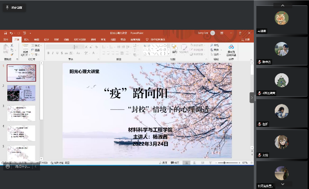 当前,全国上下正在齐心协力共同防护新冠疫情,疫情的反复让各个地方的防疫措施不断完善。为保障大学生在校以阳光积极的心态面对这突如其来的疫情,ok138cn太阳集团529举办了线上“阳光心理大讲堂”活动,由杨淑茜老师主讲,旨在帮助同学们以阳光积极的心理状态来应对自己的一些不良情绪,从而给同学们营造一个积极健康的生活氛围。