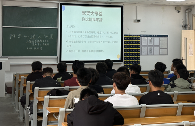 陈明琦学姐通过丰富有趣的小游戏,生动的描述,清楚地为同学们讲解了什么是心理压力、心理压力带来的利弊、如何缓解心理压力等诸多问题。讲堂内,同学们热情主动参加各种小游戏,认真听取学姐的讲解,与学姐探讨关于心理压力的本质,树立了对心理压力的正确认识。