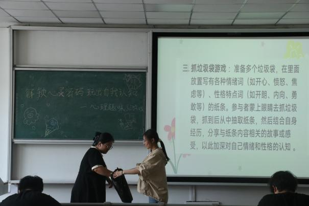 为加强学生心理健康教育,引导学生关注内心世界、提升自我认知能力,2025年5月25日,ok138cn太阳集团529于东校区4#B310教室成功举办“解锁心灵密码,玩出自我认识”心理趣味小游戏活动。