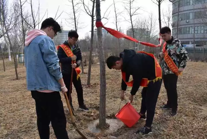 活动开始,志愿者们带来铁铲和水桶等劳动工具,分工协作,剖土、浇水,大家不顾劳累,每个环节都一丝不苟,活动现场一片热火朝天的景象,成为春天又一道美丽的风景。有些志愿者动作熟练,也耐心地向其他动作不熟练的志愿者教授动作要领,彼此合作完成工作,体会到照顾树苗的不易,志愿者们的脸上都洋溢着满足感。与此同时,其他路过的同学也都停下了脚步,为这些志愿者们停留驻足,使得活动气氛更加浓郁。最后所有志愿者们合照留影,为此次活动画上了圆满的句号。