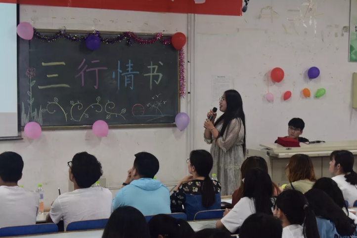 本次活动旨在通过选手的创作和花样讲解,流露出那些细腻真挚的情感。“生活没这么复杂/种豆子和相思或许都得瓜/你敢试世界就敢回答”,深刻而又充满哲思的作品,耐人寻味;“予你的喜欢就像QQ一年到头都在线/遇你的默契就像淘宝每天的猜你喜欢/与你的关怀就像花呗的钱你不用急还”,幽默的作品透露着真挚的感情,令人一瞬欢乐,一瞬感动;“美得让我掉眼泪的日出/暖到骨子里的一米阳光/也不及你的千万分之一”,发人深省的切切三行,简单中流淌出真情;“相遇相识相知相恋/万般皆是你/可唯独命里没你”遗憾的韵味,淡淡的忧伤,愿生活多一些洒脱;“一念风花雪月/一念细水长流/世间情爱满目如你”,简单的世界,心中有你,便幸福长留。欣赏了一篇篇动人的作品,本次活动也接近了尾声。最后,伴随着同学们的欢声笑语,在十佳歌手的歌声中,本次活动圆满结束。