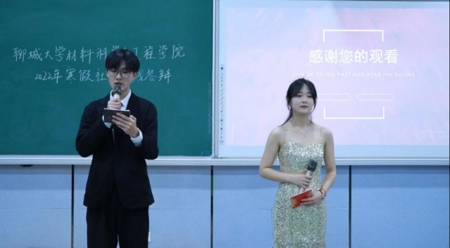 本次寒假社会实践有17支实践队伍,各实践项目主题多样,不乏亮点,涉及年味追寻,聚焦考研,防范疫情等多个社会问题。各位团队代表围绕实践背景、实践内容、问题分析、成果展示等多个维度进行详细阐述,声情并茂地向各位评委和同学们展示自己团队的实践成果,内容多彩,形式创新,展现出同学们积极进取的实践精神。