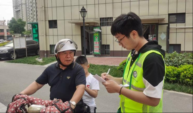 在社区工作人员的协助下,同学们分成两队展开行动,通过走访调查的方式了解市民们电动车骑行安全意识。结果表明:大部分市民们对于现阶段地方电动自行车安全管理条例表示认同,认为骑电动车佩戴安全头盔是一项最基本的交通安全常识,每个人都应当重视起来。