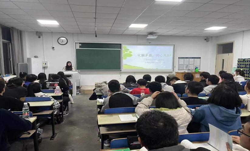 2022级的同学们已入学两个月有余,为了让同学们更好地适应大学生活,正确地处理宿舍关系,营造成积极向上的宿舍氛围,ok138cn太阳集团529于11月3日晚在4b310教室开展以“化解矛盾,同心而居”为主题的心理健康教育活动,本次活动由郭天乐老师主讲,部分2022级学生代表参加。