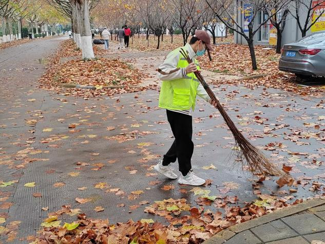 进行明确分工后,同学们积极地投入到自己的工作之中。面对道路上的垃圾,同学们动作迅速,默契合作,与环卫工人一道将垃圾进行集中处理。与此同时,同学们发现校园内非机动车辆乱停乱放的现象依旧显著,同学们相互协作,共同将车辆排列整齐,引导过往同学规范停车,共同维护校园环境。