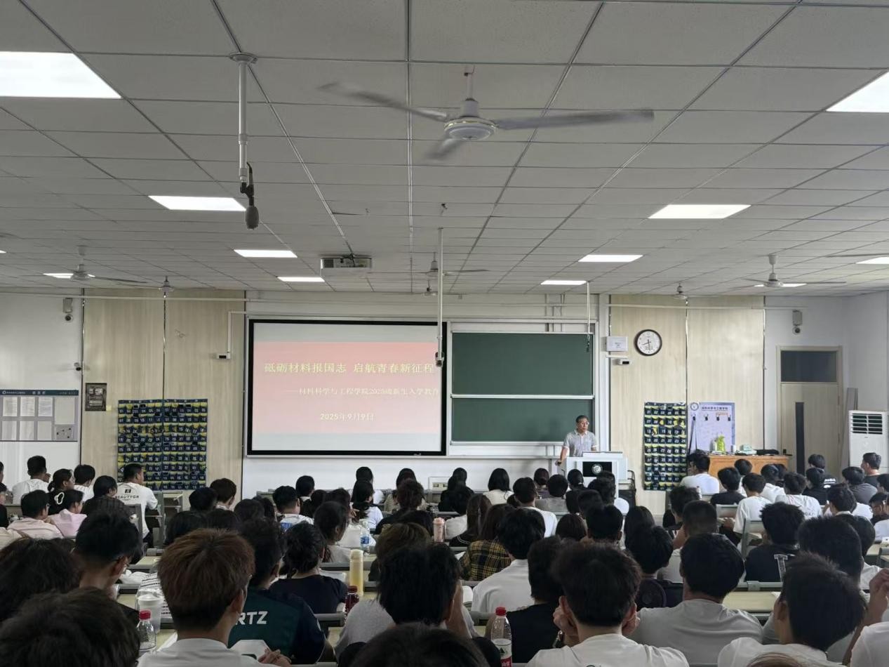 为强化2025级新生思想政治引领,树立“材料报国”的远大志向,2025年9月9日,ok138cn太阳集团529党委副书记郑永朝面向2025级全体新生,以“砥砺材料报国志,启航青春新征程”为主题开展新生入学教育活动。