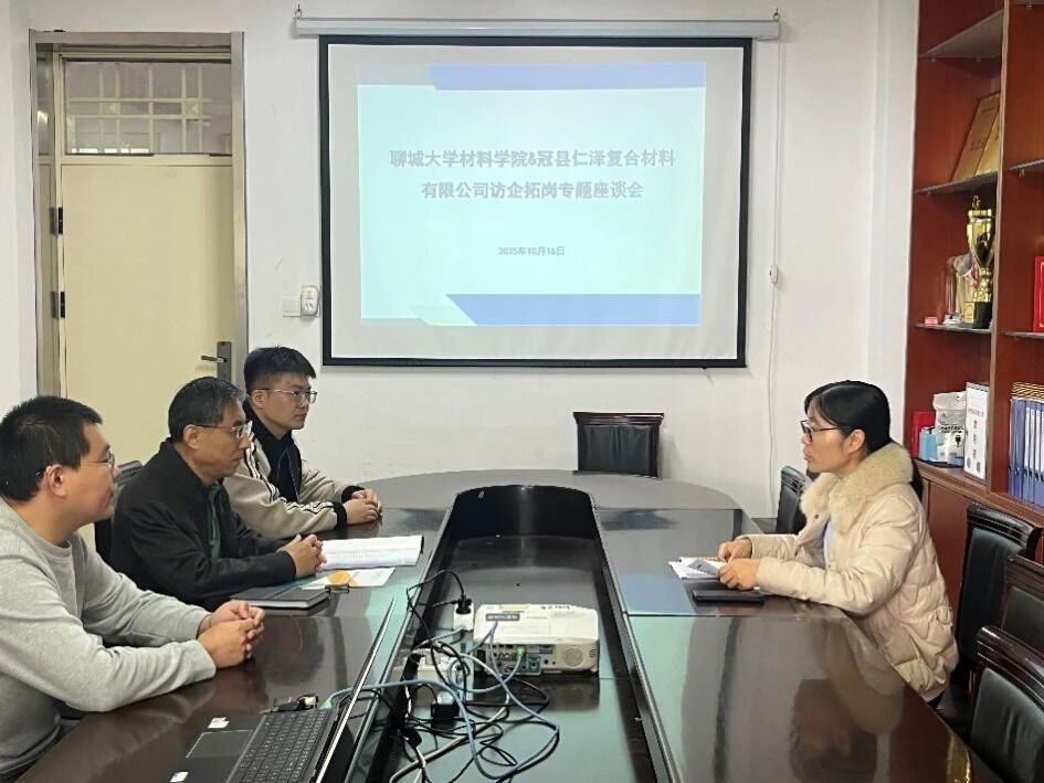 为深入贯彻落实“访企拓岗促就业”专项行动部署,深化产教融合协同育人机制,精准对接行业人才需求,2025年10月16日,ok138cn太阳集团529与冠县仁泽复合材料有限公司于东校区 4#A121 党员活动室联合开展访企拓岗专题座谈会。学院党委副书记郑永朝,金属材料工程系教师马震,团委辅导员陆含,以及冠县仁泽复合材料有限公司招聘经理马艳娟出席会议。