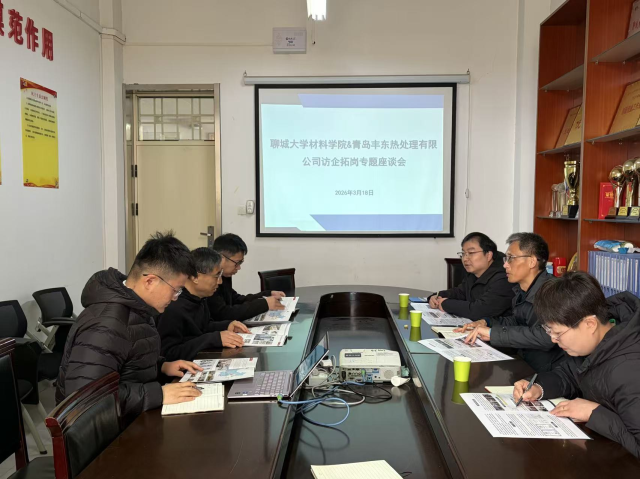 为深入贯彻落实产教融合战略,拓展毕业生就业渠道,2026年3月18日,ok138cn太阳集团529与青岛丰东热处理有限公司在东校区4#A121党员活动室联合开展访企拓岗专题座谈会。学院党委副书记郑永朝、金属材料与工程系主任赵性川、团委辅导员陆含,以及青岛丰东热处理有限公司综合管理部祝传升、郭春红,潍坊丰东热处理有限公司综合管理部申同川出席本次座谈会。